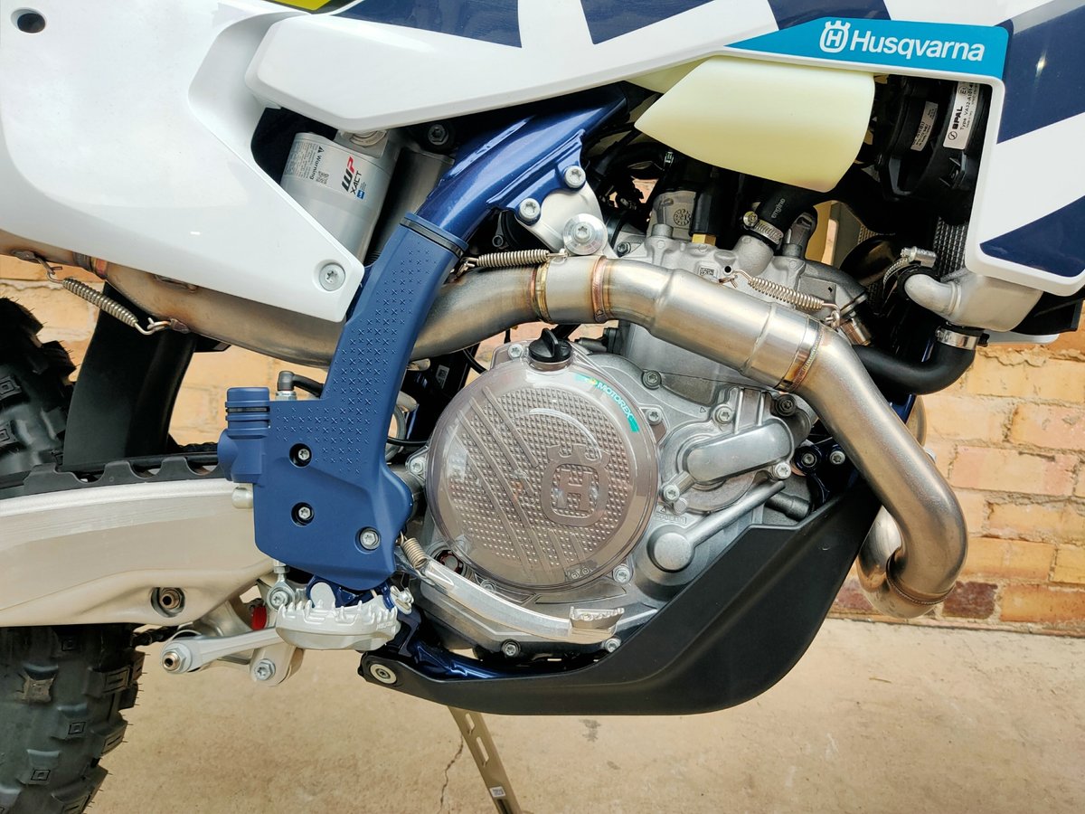 Inside the engine, the shaft arrangements are positioned close to the centre of gravity. Combined with WP suspension and an agile chassis, this contributes to highly responsive handling. The enduro-specific 6-speed gearbox, manufactured by Pankl Racing Systems, engages a dedicated engine map for each gear to enhance rideability in all conditions.